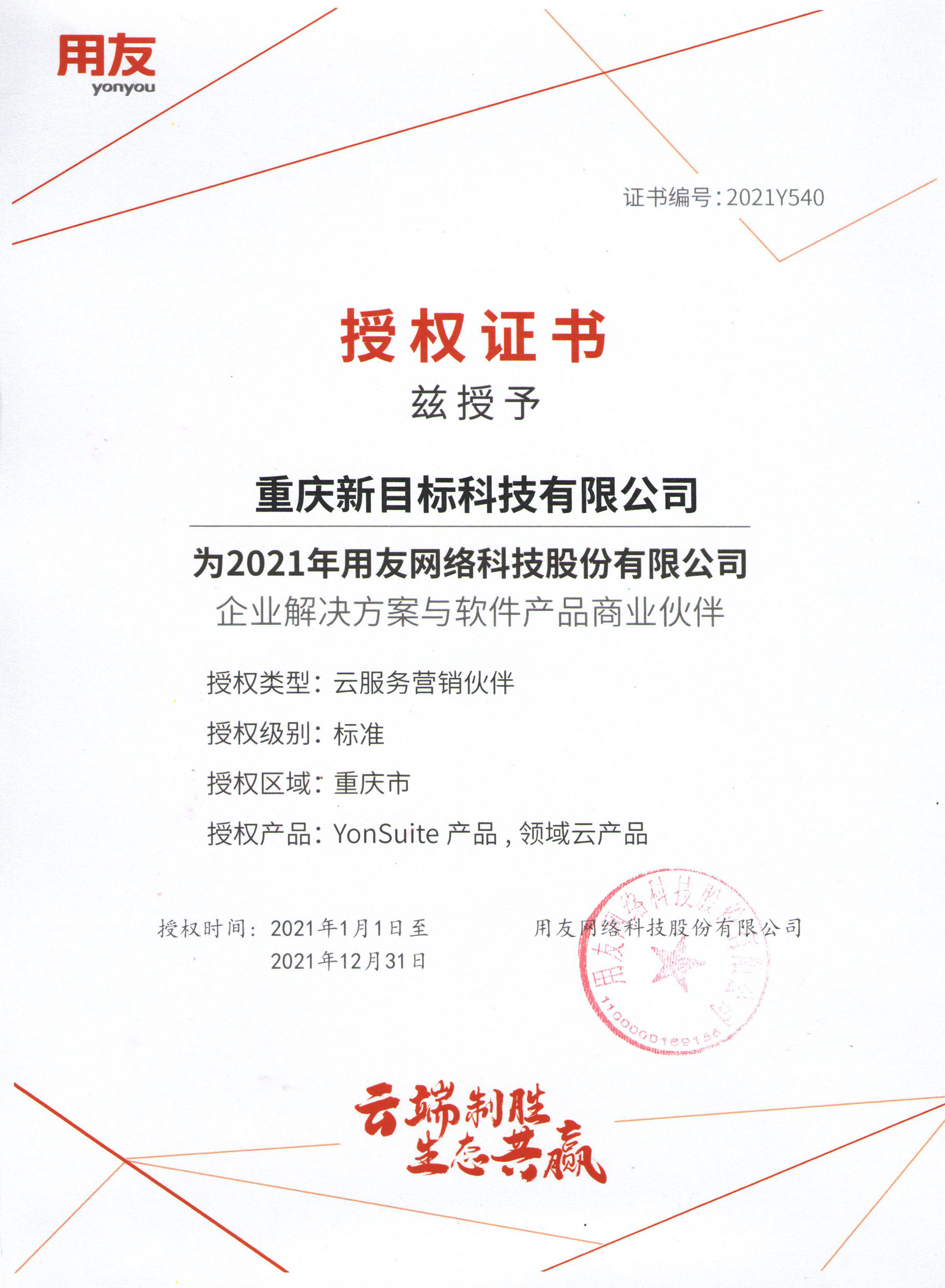 2021年用友云服務(wù)營(yíng)銷伙伴授權(quán)書(shū)